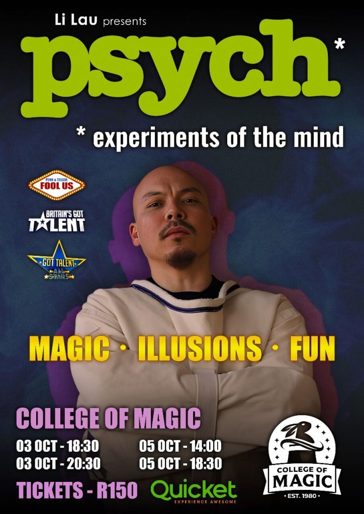 Link to a Magician: Book Li LauShare to friendsA premium live showcase of magic and illusion. Step into the Mind-Bending World of “PSYCH” — The Latest Show by South Africa’s Master of the Bizarre, Li Lau From the acclaimed stages of the National Arts Festival Fringe in Makhanda comes “PSYCH”, a groundbreaking new experience from South Africa’s foremost escape artist and bizarre magician, Li Lau. In Read more… -