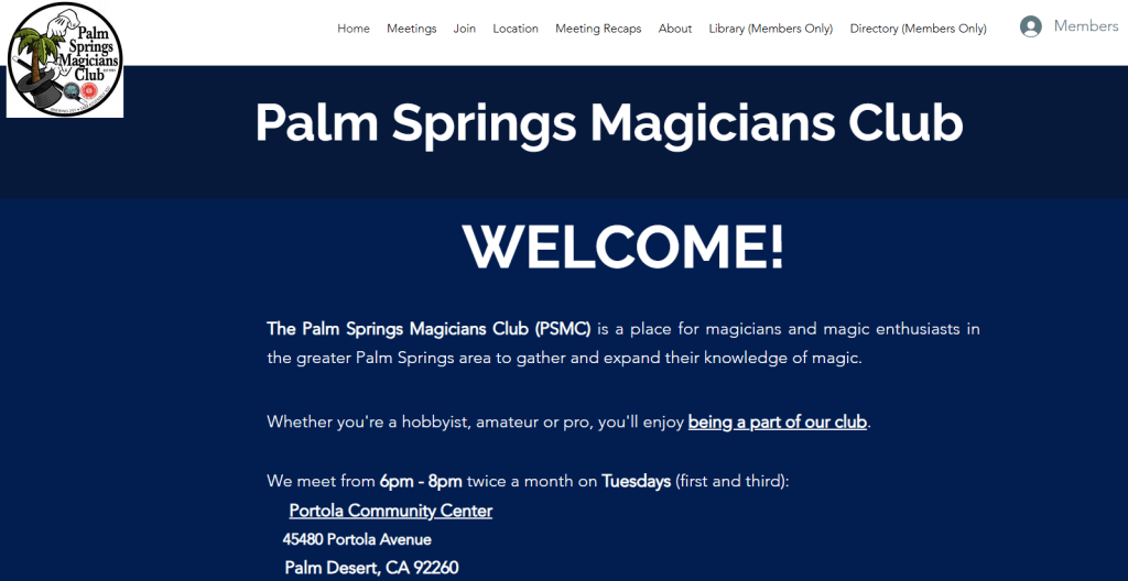 • Palm Springs Magicians Club Screenshot web home 04042025