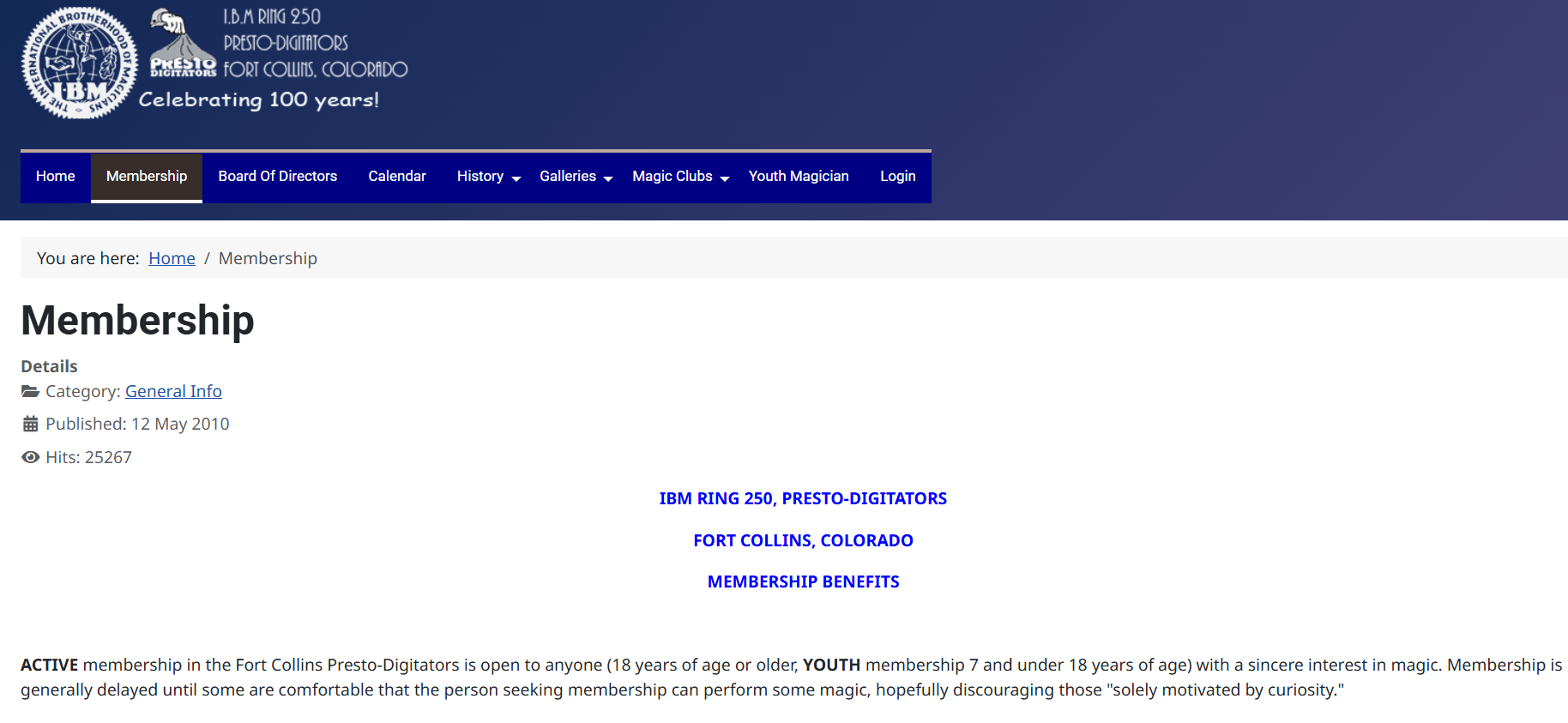 Presto-Digitators membership dues are $20 a year (make check payable to I.B.M. Ring 250, Presto-Digitators), but we invite anyone to attend our meetings, and receive a complimentary newsletter (usually three months), until they are comfortable with the group. YOUTH membership dues are $10.00 a year. Significant others, assistants, or accompanying non-magicians (for parents), may also become an ASSOCIATE member for $4.00 a year.